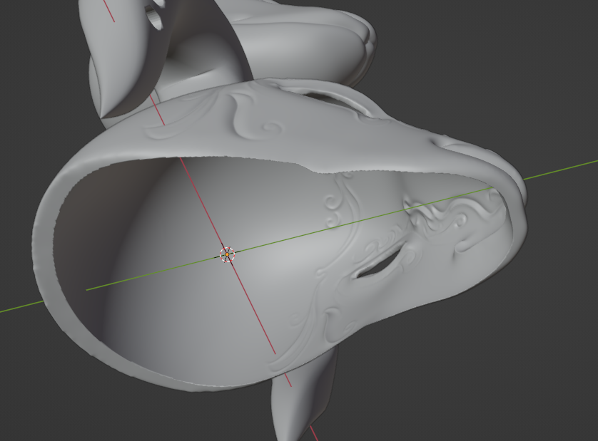 Using the automatic hollow out bullshit in blender and meshmixer was extremely frustrating process that dosent even work so im being a neanderthall and using the boolean tool and a smaller version of the sheep face and using that to hollow out the face. It works and im pretty sure that itll be stable.
